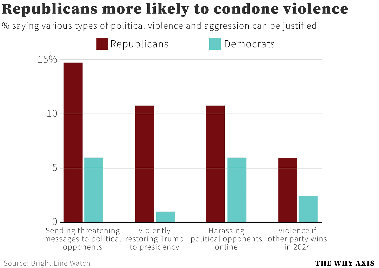 The end result is a measurement for partisan support for political violence that is about as narrow and strict as one could hope for. And the results are still incredibly terrifying.