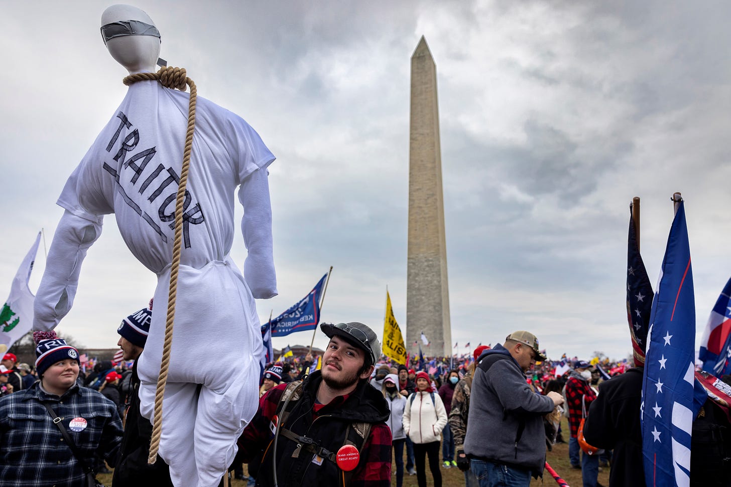 Trump loyalists attacking and overrunning the U.S. Capitol in an attempt to disrupt ballot-counting;