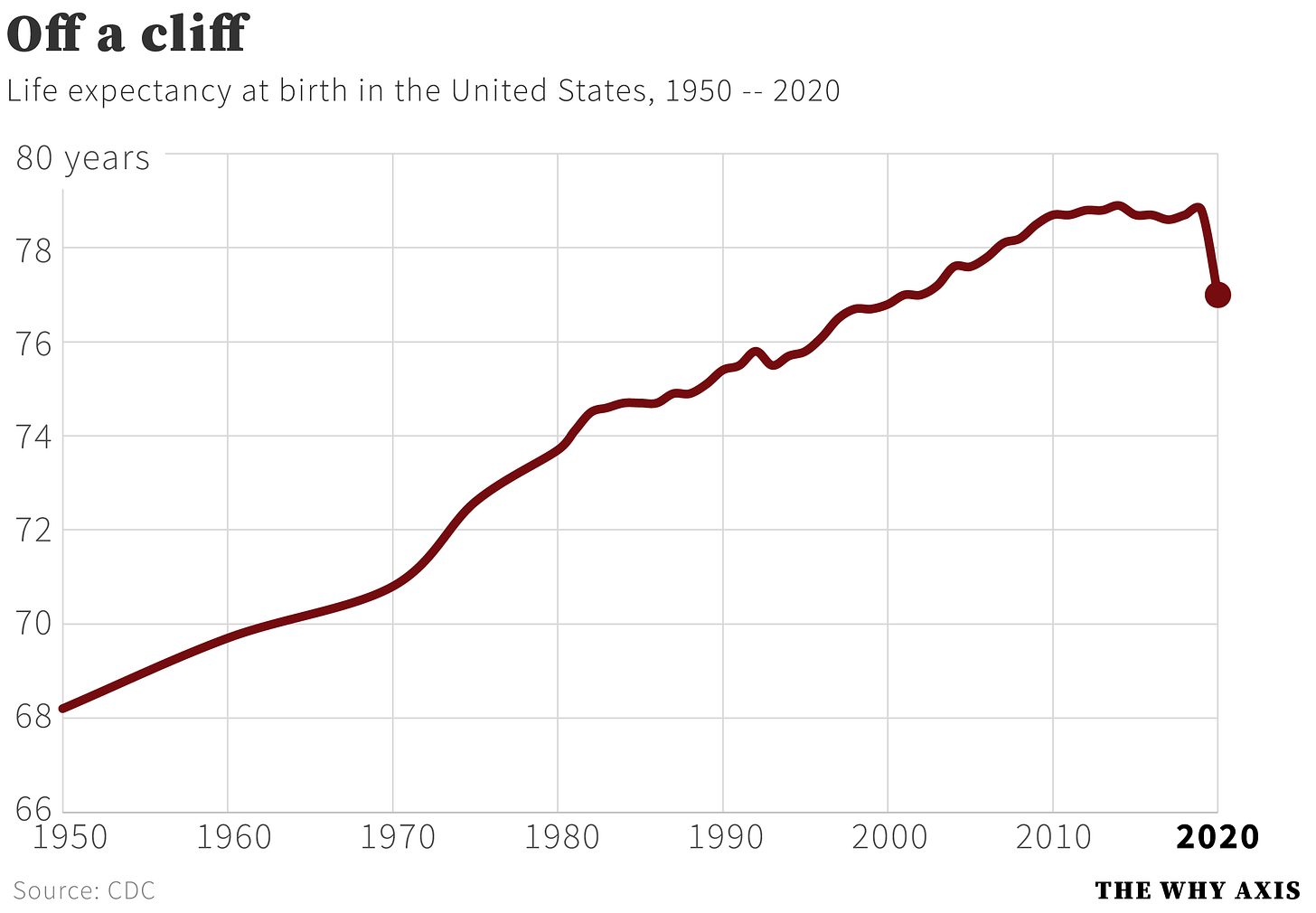 This week the CDC finally released official mortality data for 2020. It is ugly: average life expectancy dropped by nearly two years, the sharpest decline since World War II. The pandemic was the primary driver of this, officially becoming the third-leading cause of death in the country, behind only heart disease and cancer.